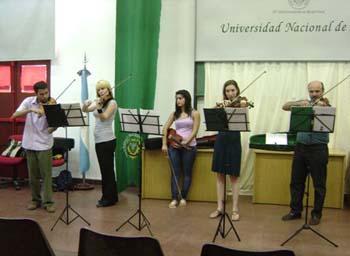 | En el Salón Auditorio se llevó a cabo la muestra anual de los talleres artísticos UNLu de violín, viola y cello. | |