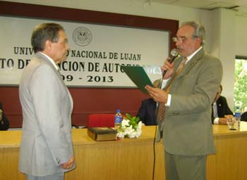 El Rector saliente le toma Juramento a Carlos Cansanello. Primer discurso del nuevo Rector Cansanello: trazó los objetivos a cumplir por su gestión. |