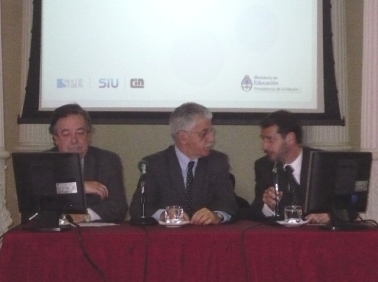 | Dibbern, Tedesco y Gegunde en el acto de lanzamiento de "InfoUniversidades". | El Ministro Tedesco resaltó la importancia de este emprendimiento. |