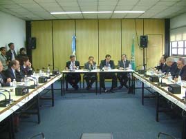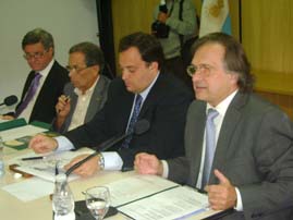 | En la Sala del Consejo Superior se llevó a cabo la Reunión, que fue encabezada por el Ministro Oporto, el Rector Cansanello, el Ministro Ferré y el titular de la CIC Gianella. | |